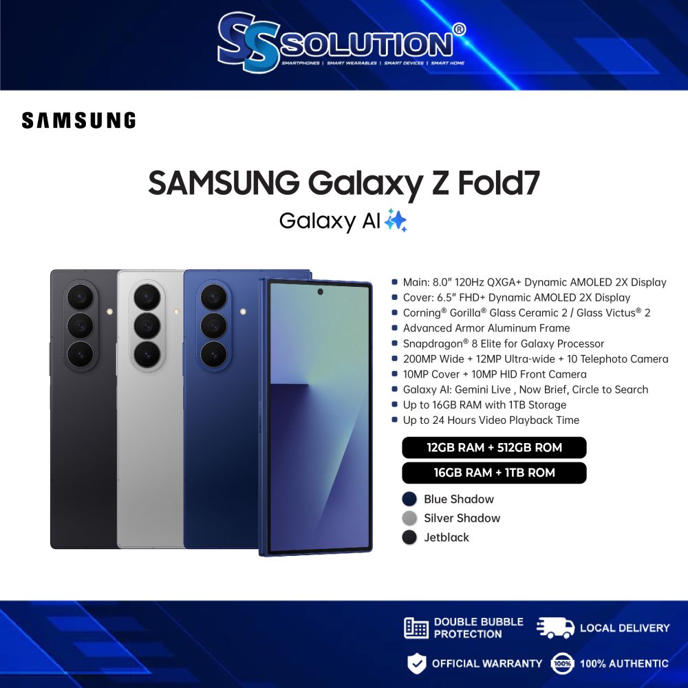 Samsung Galaxy Z Fold7 (12/16GB RAM + 256/512/1TB ROM) | 8.0″ 120Hz QXGA+ Dynamic AMOLED 2X Display | Snapdragon® 8 Elite for Galaxy | Up to 24 Hours Video Playback Time